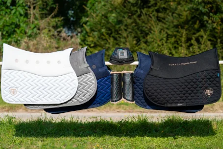 Mit Hilfe der Magnetfeldtherapie™ – Kollektion von Torpol kann der Bewegungsapparat deines Pferdes verbessert werden. Ein gesunder Rücken sowie schwellungsfreie Gelenke sind ein Garant für Flexibilität und die volle Ausschöpfung des Pferdepotenzials.